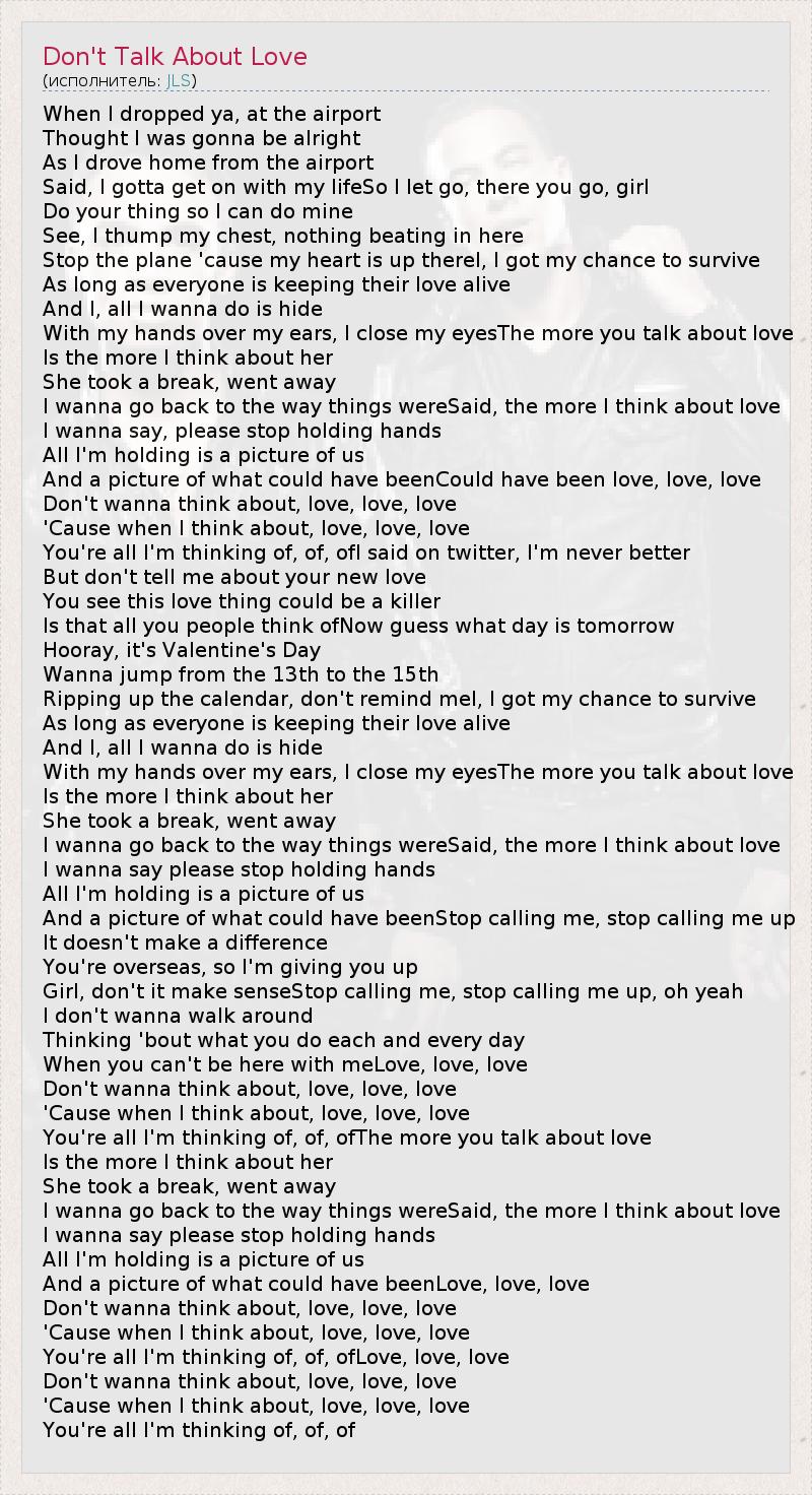 А как ты думаешь, о чем песня "Don't Talk About Love" ?