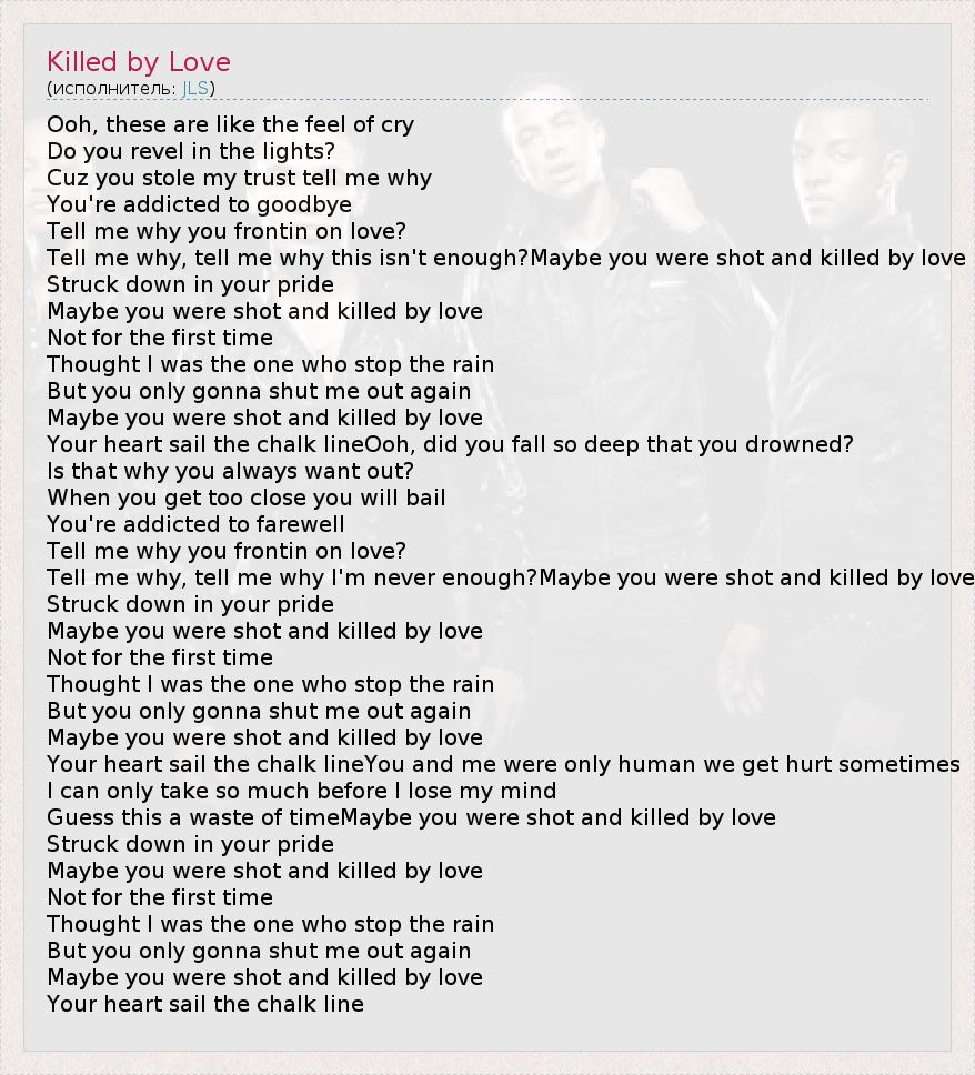 А как ты думаешь, о чем песня "Killed by Love" ?