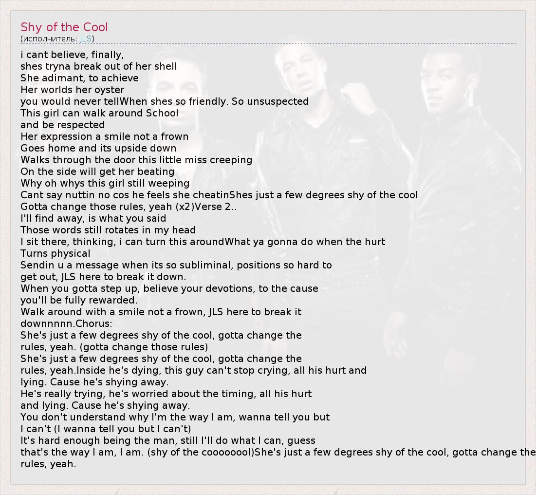 А как ты думаешь, о чем песня "Shy of the Cool" ?