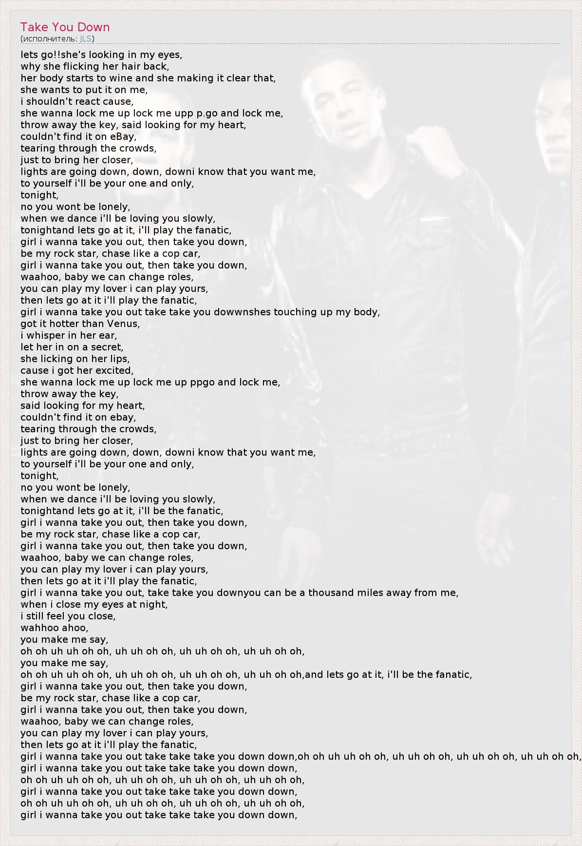girl i wanna take you out take take take you down down,oh oh uh uh oh oh, uh uh oh oh, uh uh oh oh, uh uh oh oh,