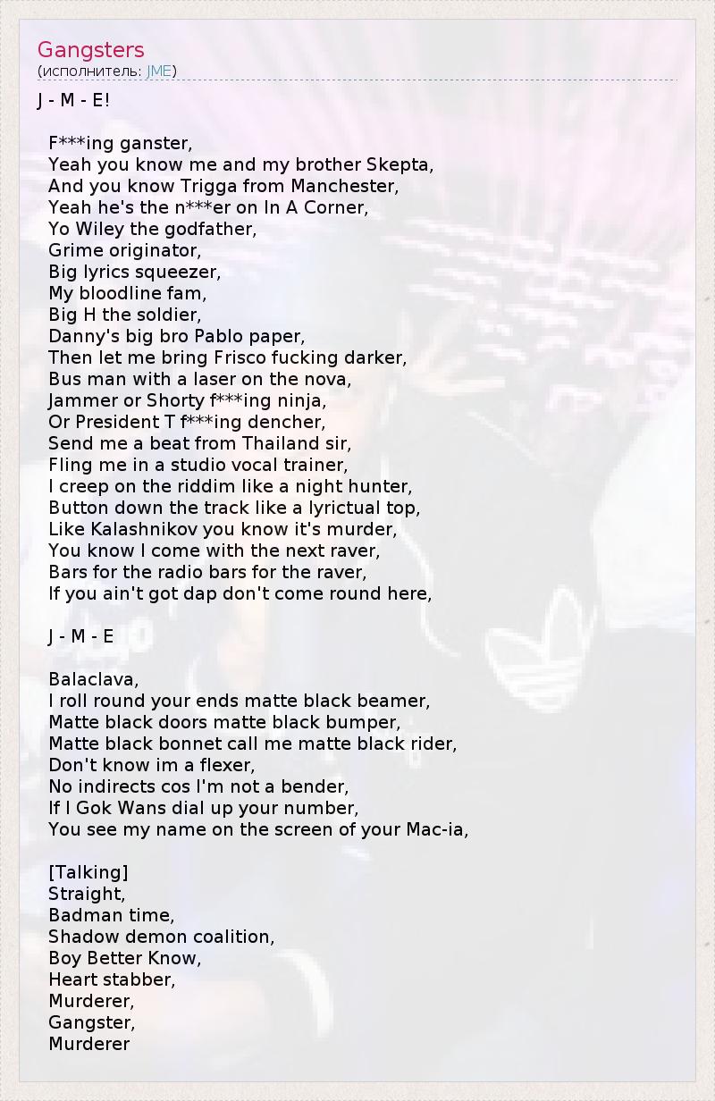 А как ты думаешь, о чем песня "Gangsters" ?