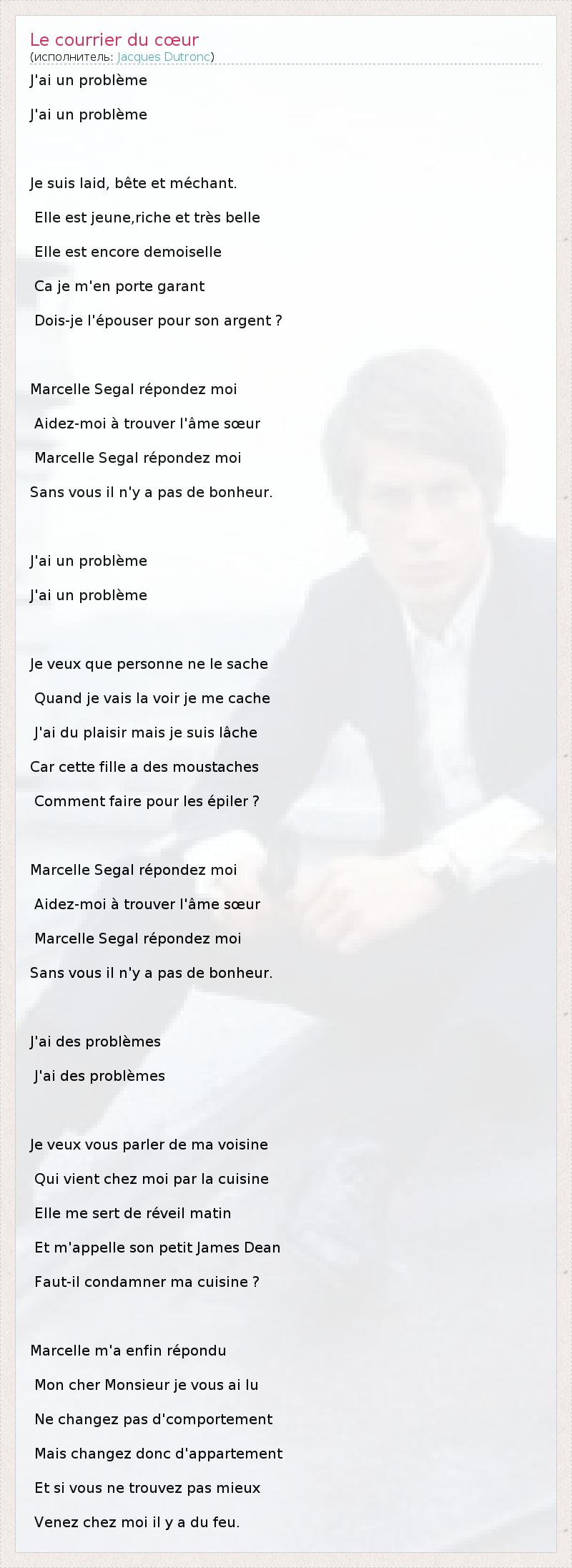 А как ты думаешь, о чем песня "Le courrier du cœur" ?