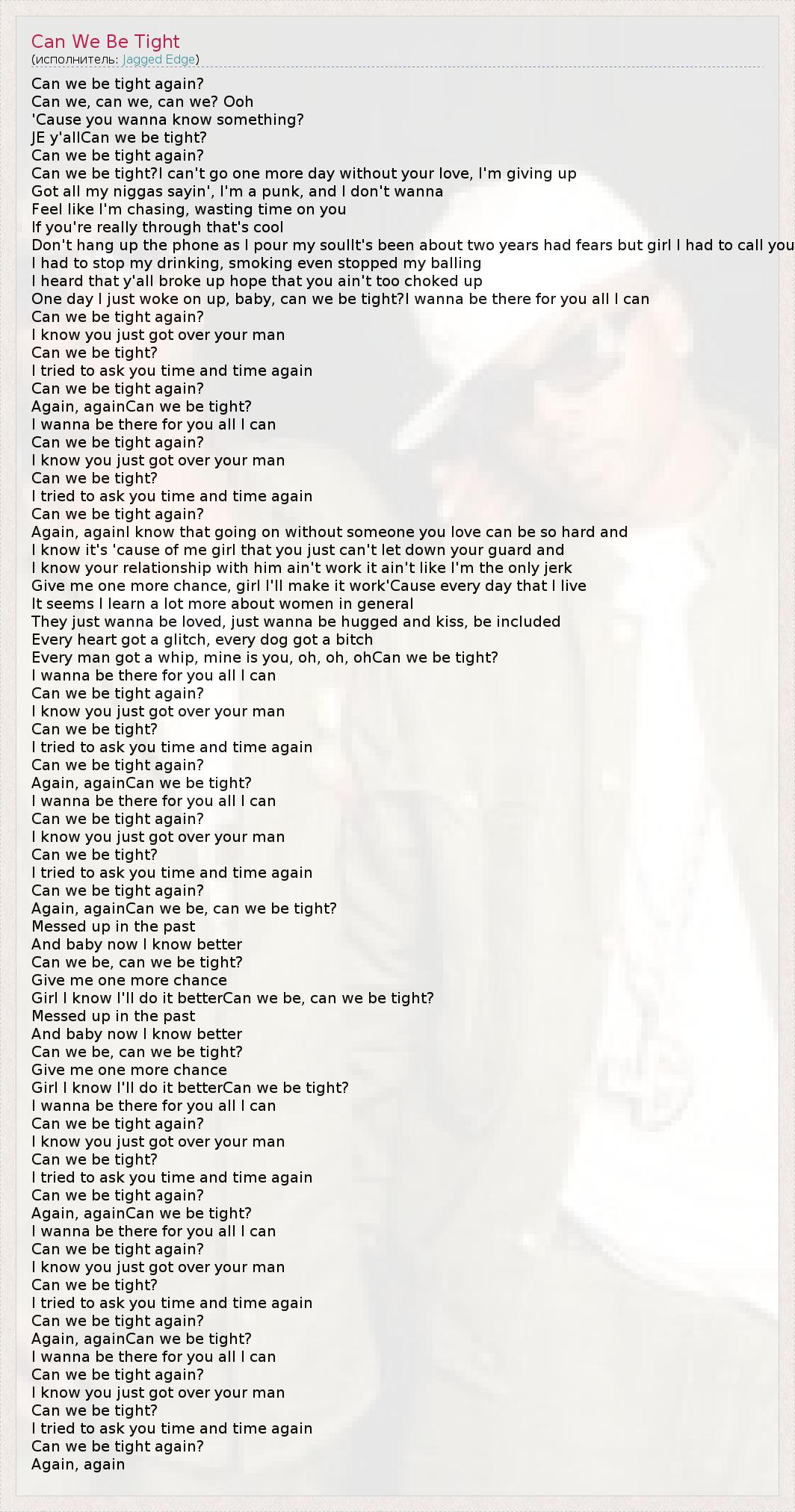 А как ты думаешь, о чем песня "Can We Be Tight" ?