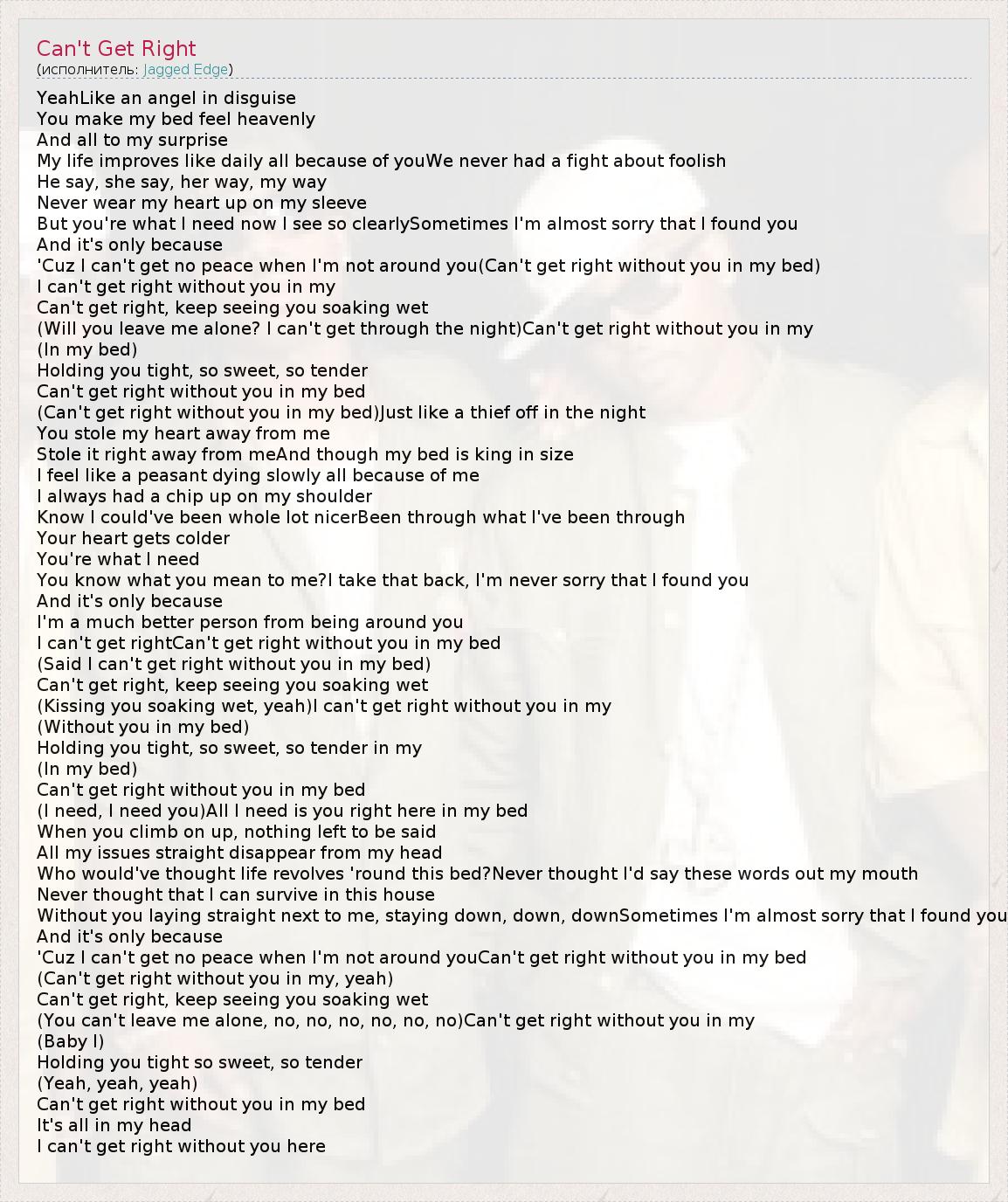 А как ты думаешь, о чем песня "Can't Get Right" ?