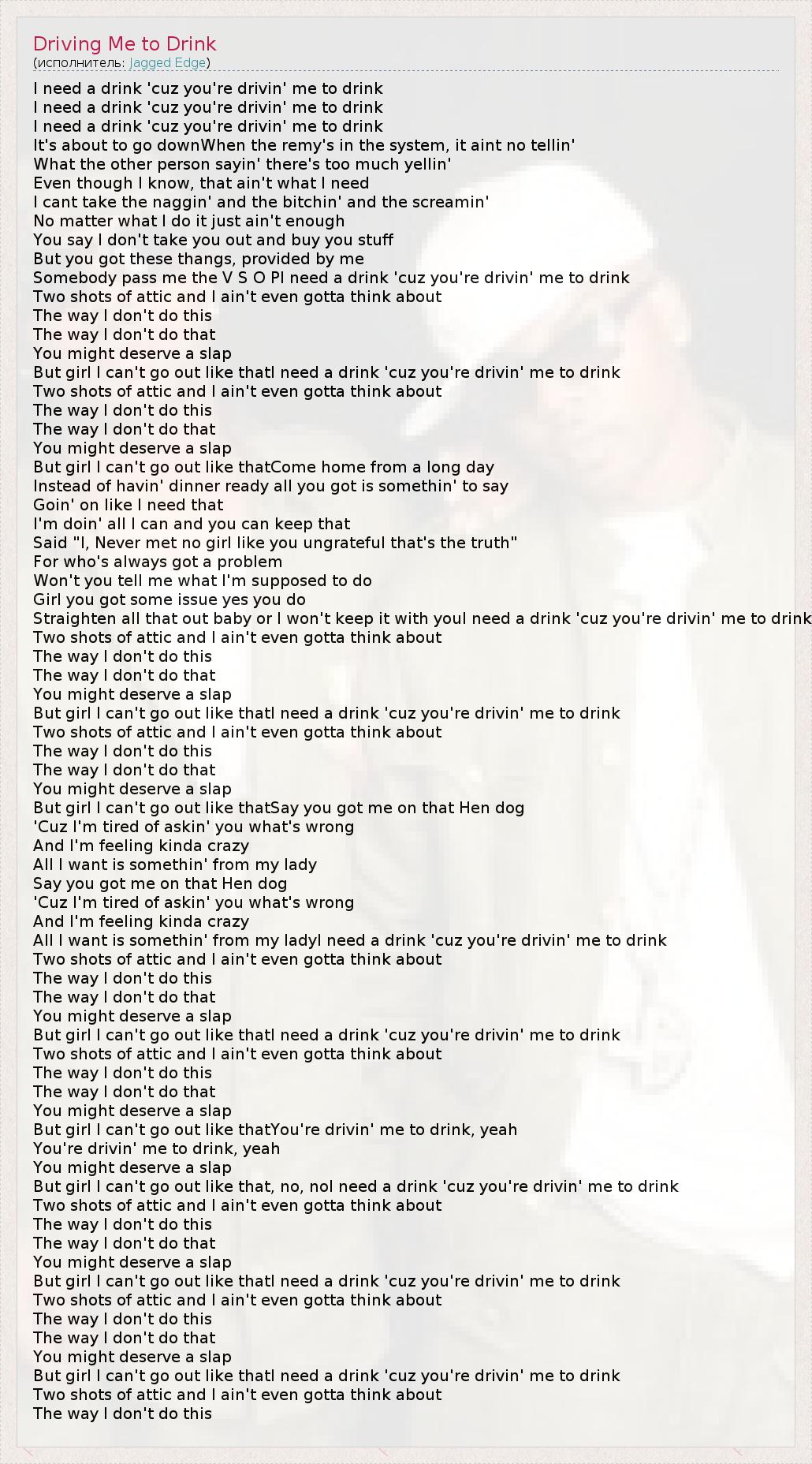 All I want is somethin' from my ladyI need a drink 'cuz you're drivin' me to drink