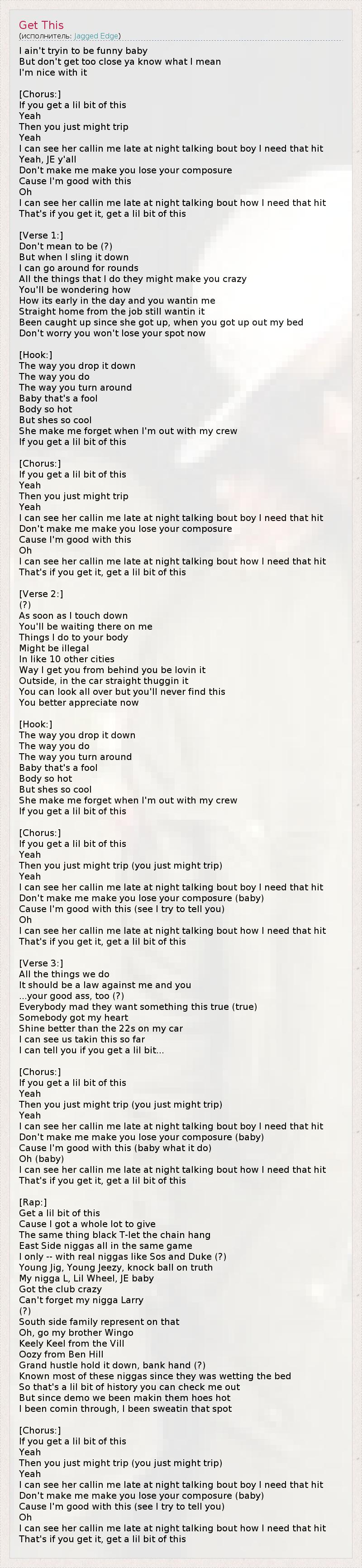 Это интересно:Jagged Edge - американская R&B певческая группа, которая первоначально подписалась через Со Со Деф Рекордс Джермана Дюпри на Коламбиа Рекордс. Группа состоит из близнецов - лидирующих певцов Брайана Кеси (прозванного Браско) и Брендона Кеси (Кейса Динеро) (оба рождены 13 октября 1978), Кайла Нормана (Куик), и Ричарда Уинго (Уинго). Уинго позже присоединился к группе после того как Канди Баррусс... продолжение