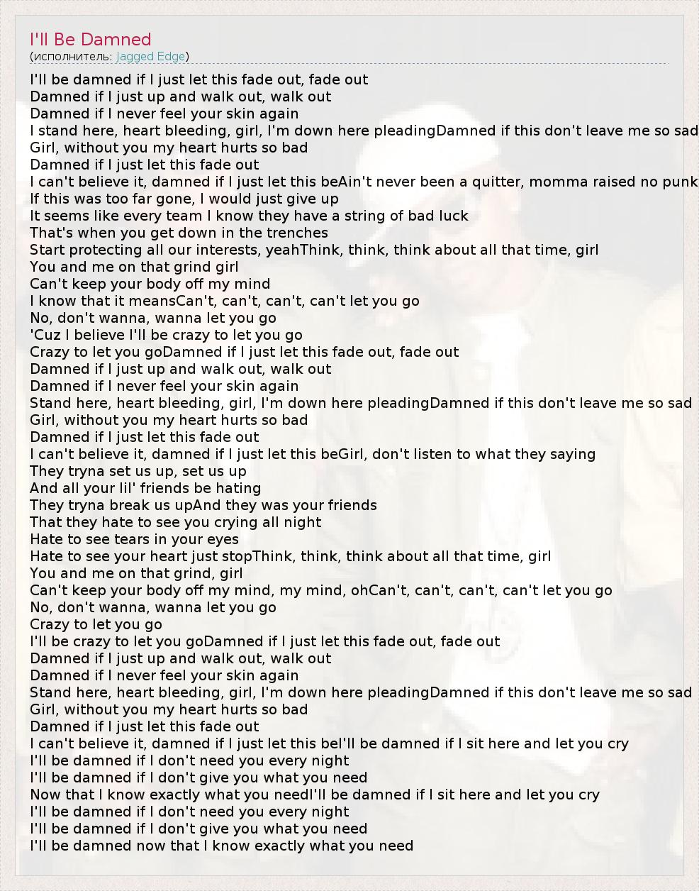 А как ты думаешь, о чем песня "I'll Be Damned" ?