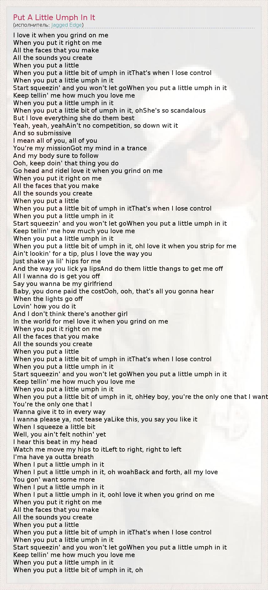 А как ты думаешь, о чем песня "Put A Little Umph In It" ?