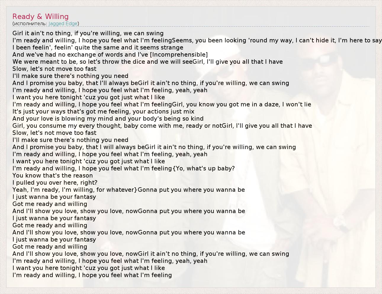 А как ты думаешь, о чем песня "Ready & Willing" ?