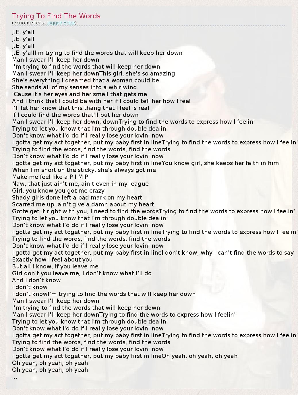 ГлавнаяИсполнителиJagged EdgeTrying To Find The Words