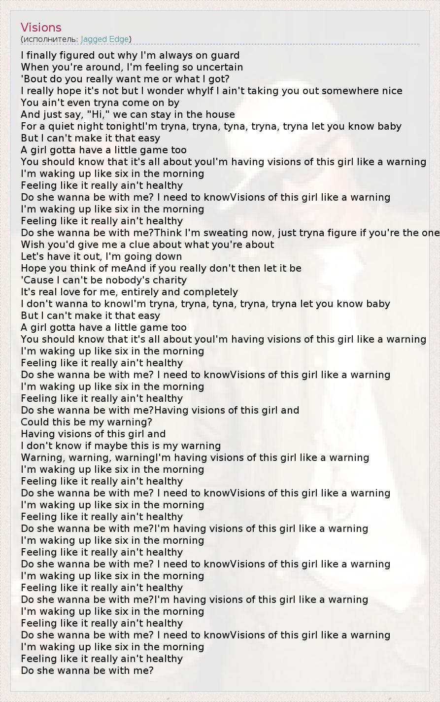 Do she wanna be with me? I need to knowVisions of this girl like a warning