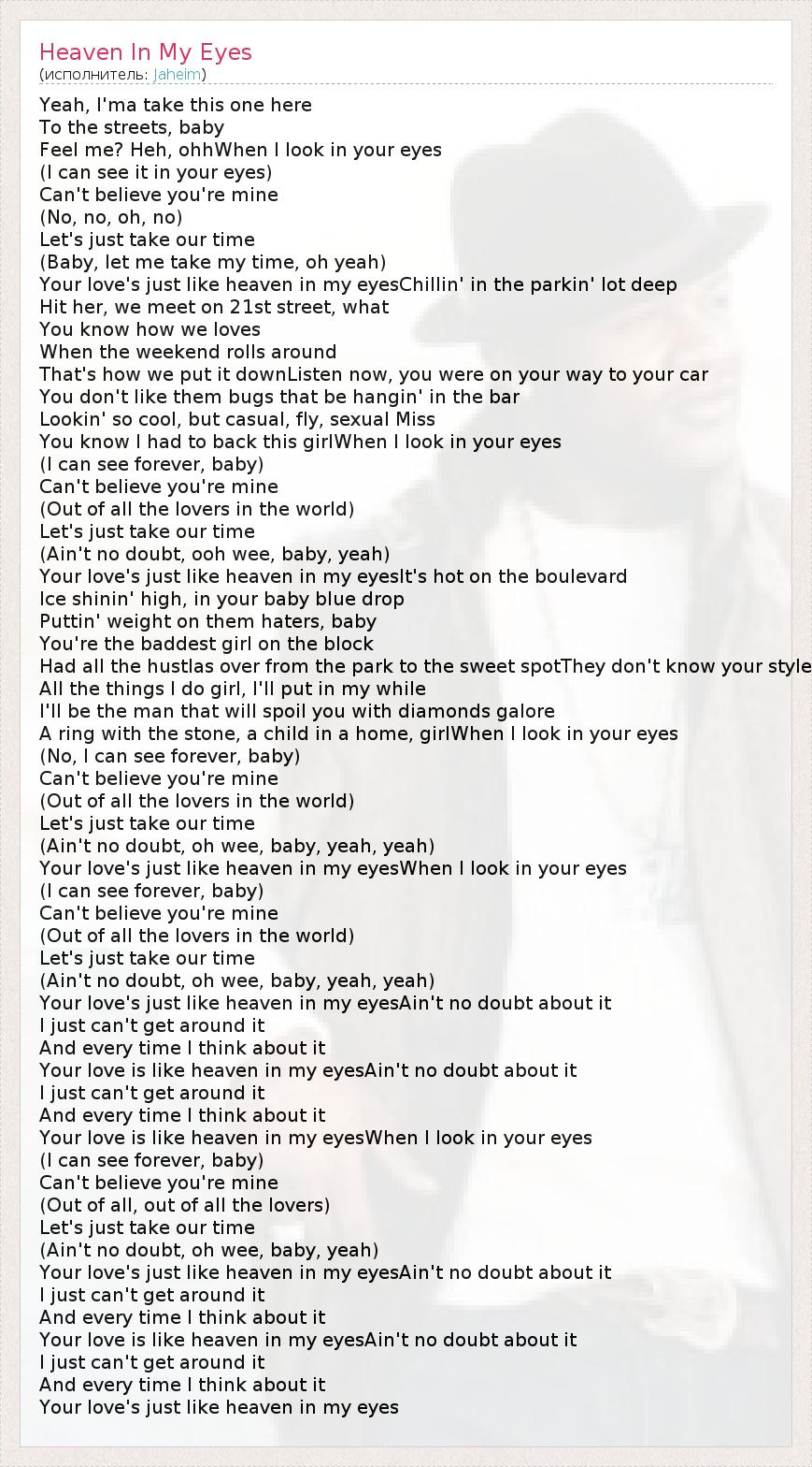 А как ты думаешь, о чем песня "Heaven In My Eyes" ?