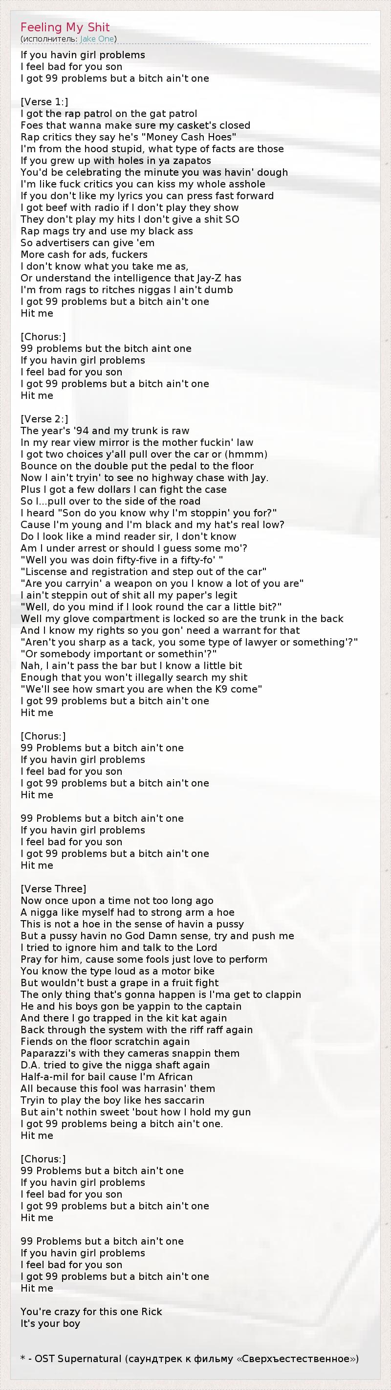 А как ты думаешь, о чем песня "Feeling My Shit" ?