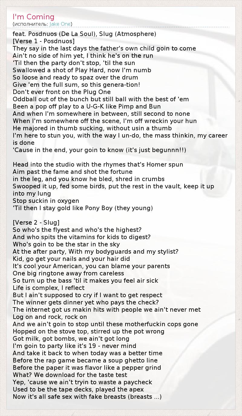 А как ты думаешь, о чем песня "I'm Coming" ?