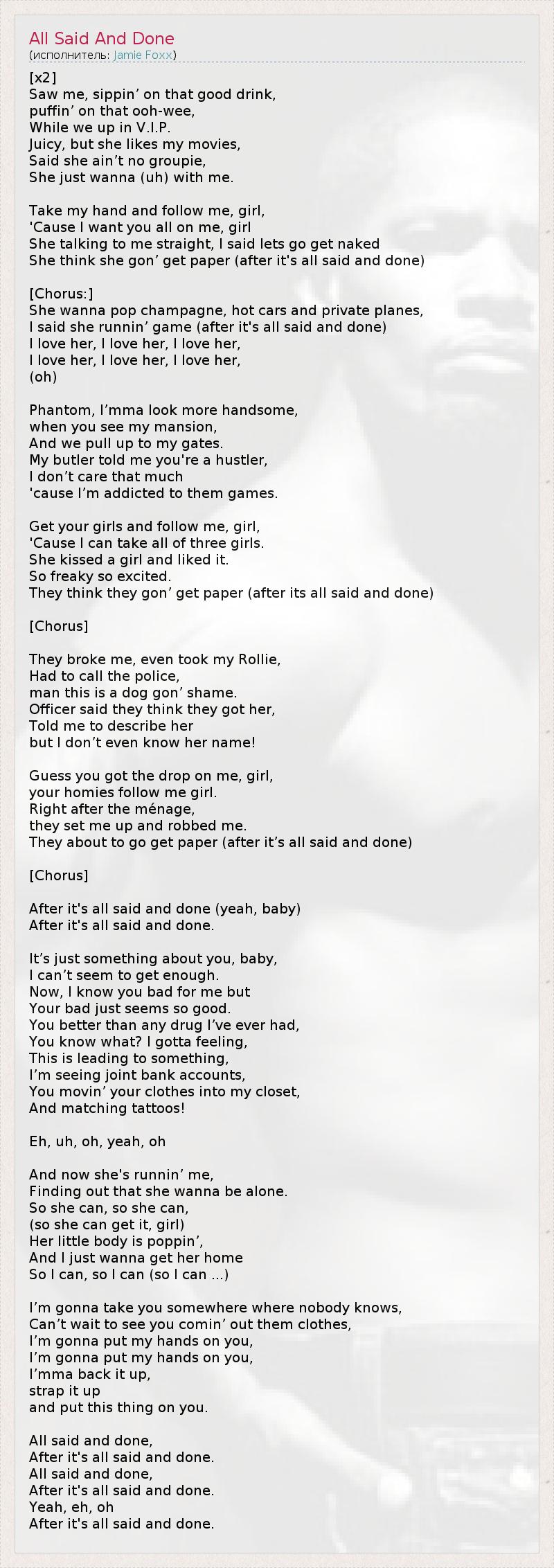 А как ты думаешь, о чем песня "All Said And Done" ?