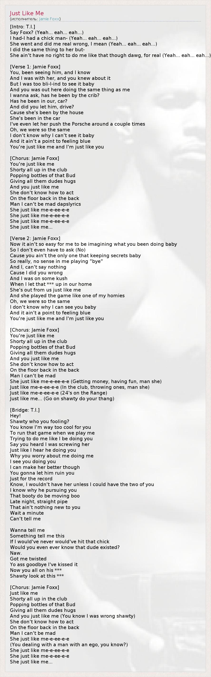 А как ты думаешь, о чем песня "Just Like Me" ?