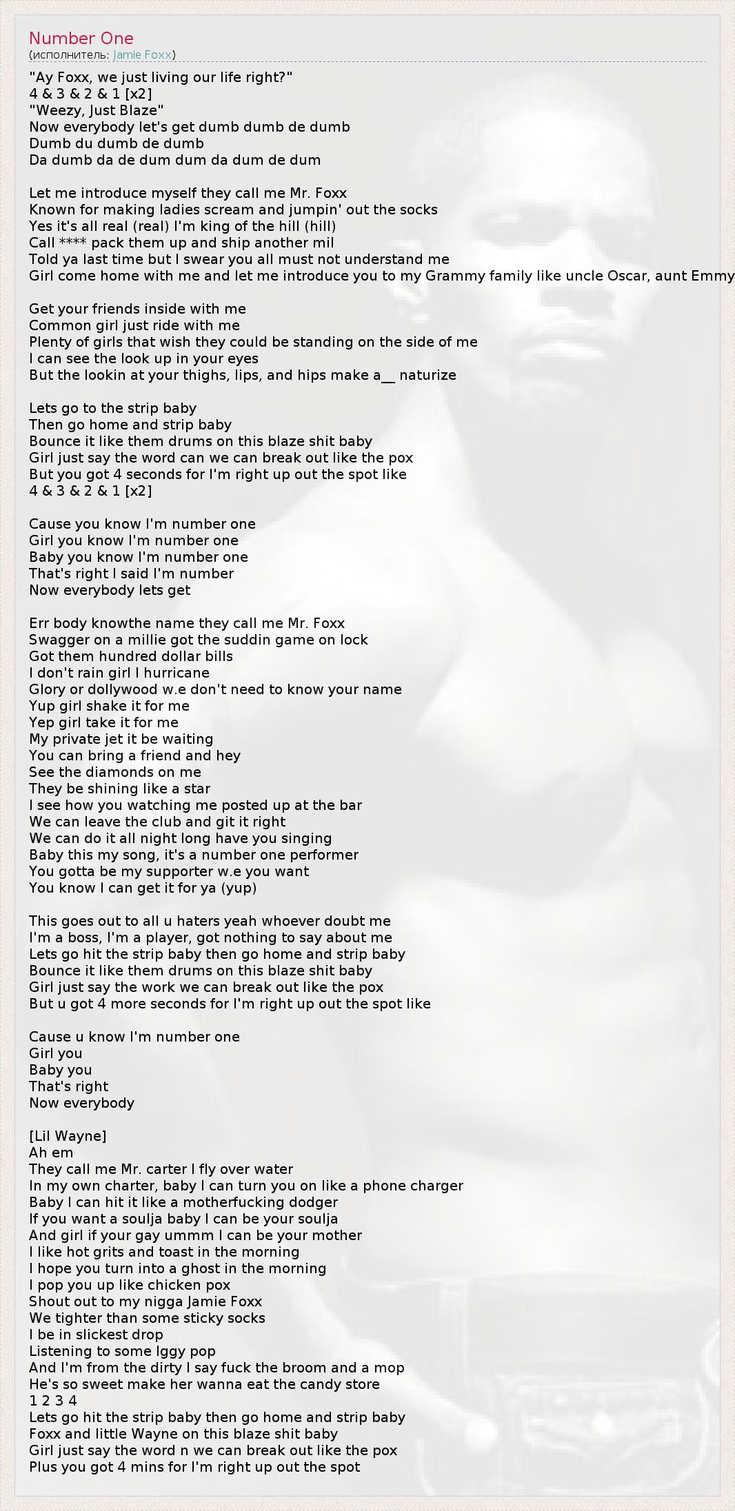 А как ты думаешь, о чем песня "Number One" ?