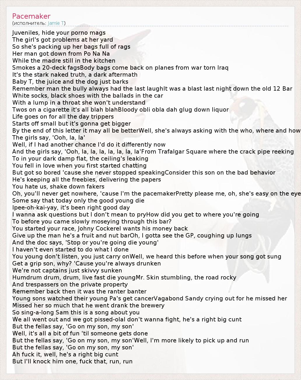 А как ты думаешь, о чем песня "Pacemaker" ?