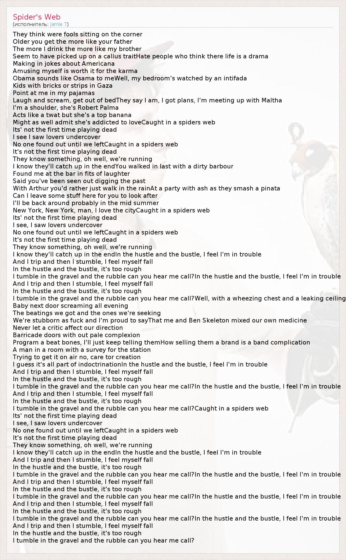 А как ты думаешь, о чем песня "Spider's Web" ?