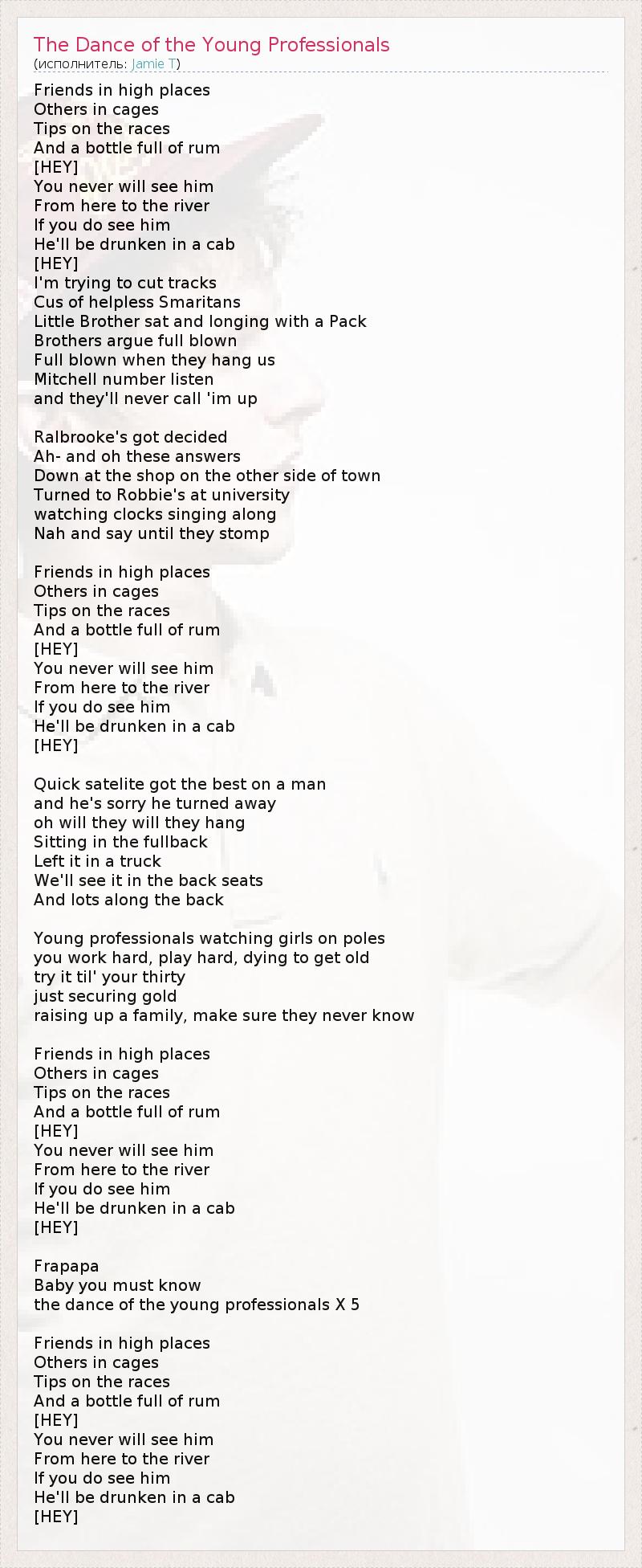 А как ты думаешь, о чем песня "The Dance of the Young Professionals" ?