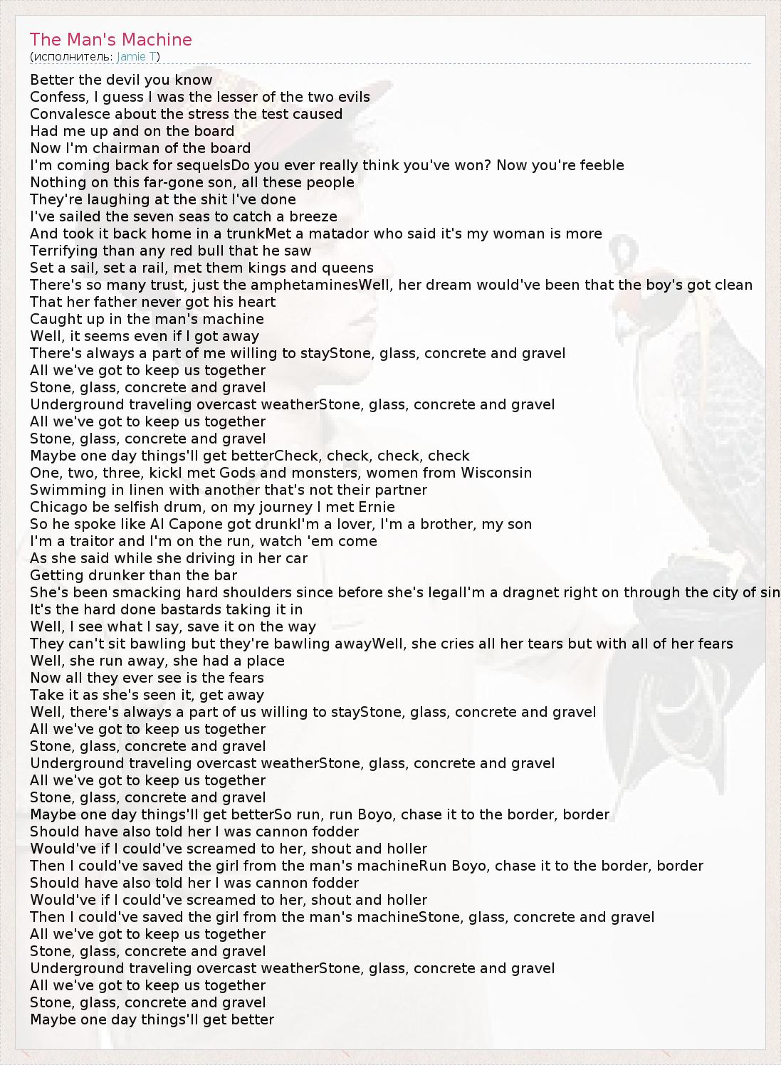 А как ты думаешь, о чем песня "The Man's Machine" ?