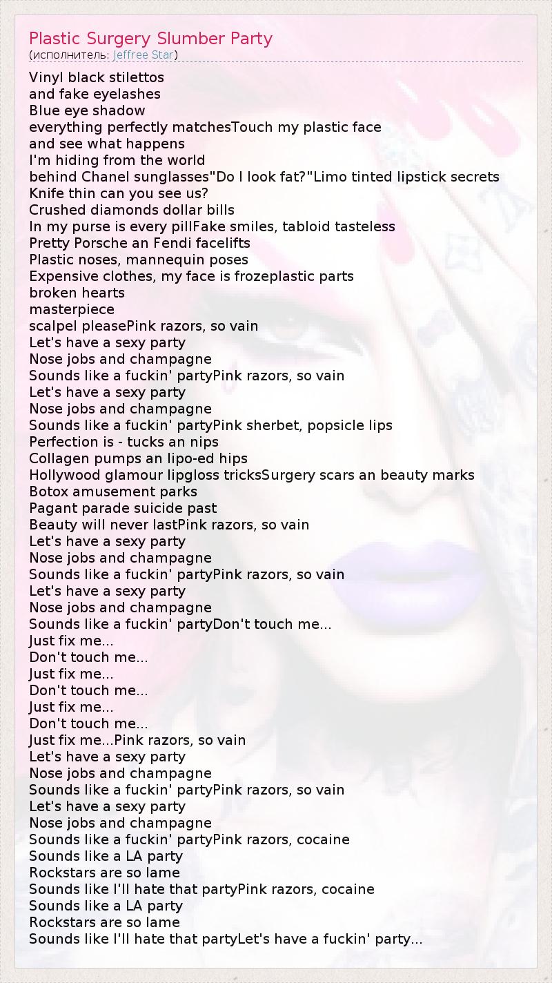 А как ты думаешь, о чем песня "Plastic Surgery Slumber Party" ?