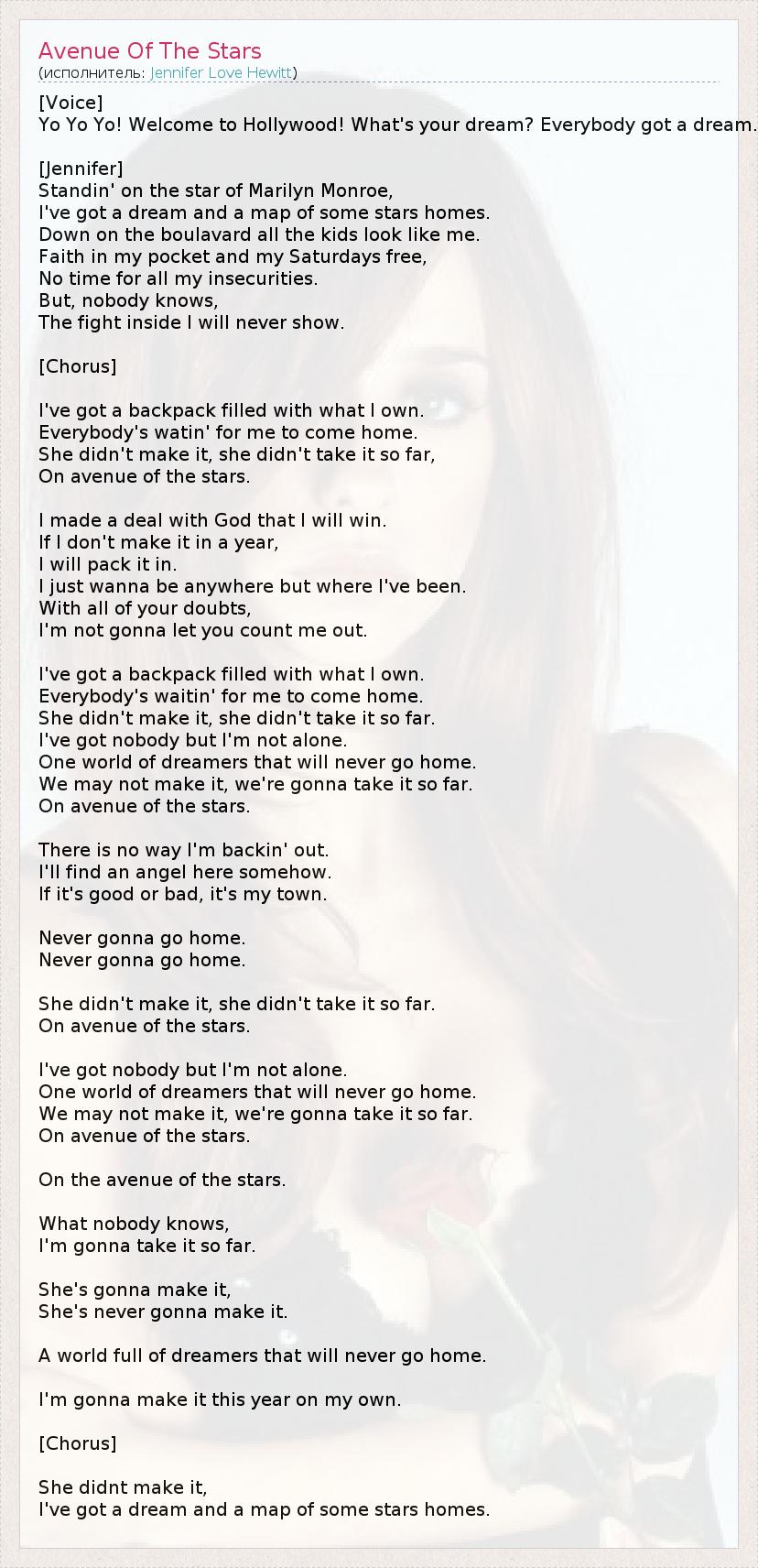 А как ты думаешь, о чем песня "Avenue Of The Stars" ?