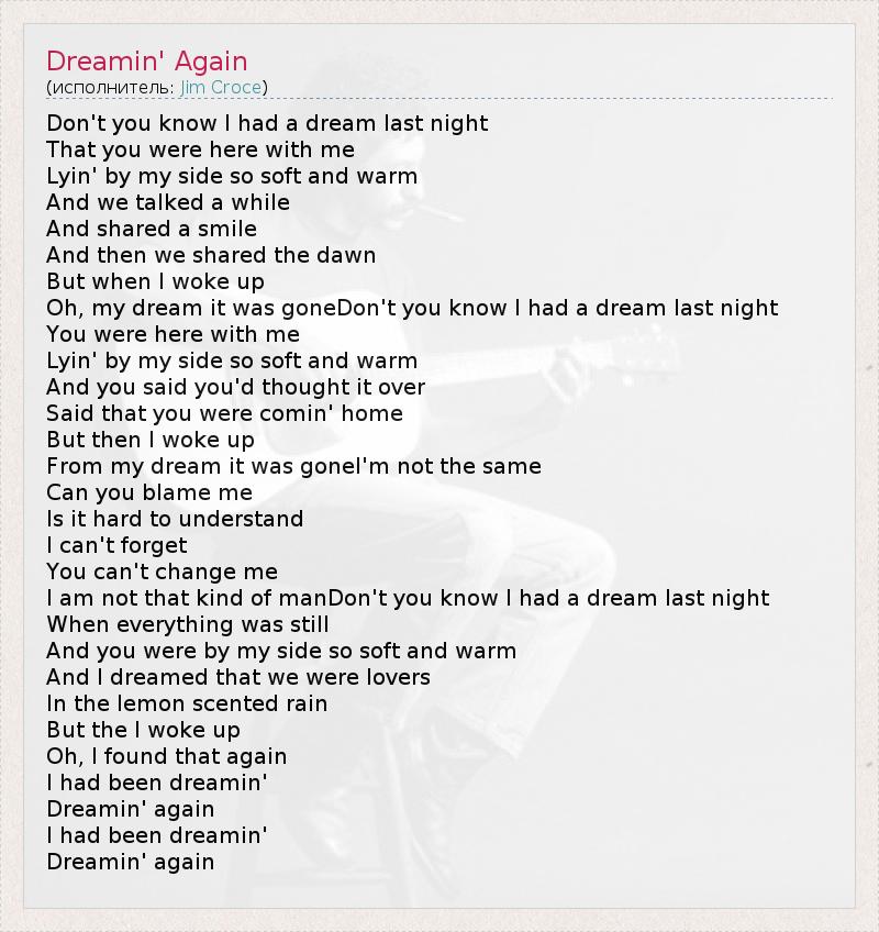 А как ты думаешь, о чем песня "Dreamin' Again" ?