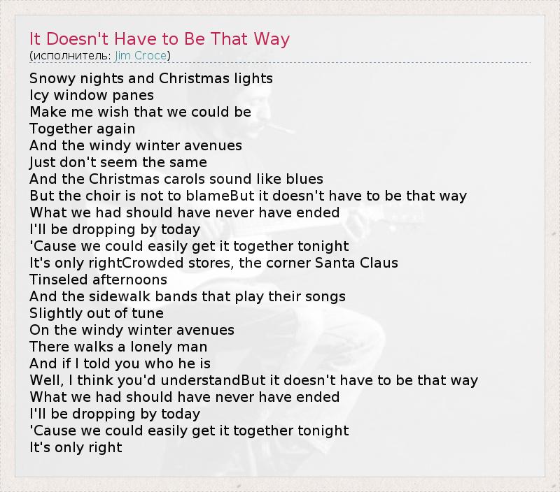 ГлавнаяИсполнителиJim CroceIt Doesn't Have to Be That Way