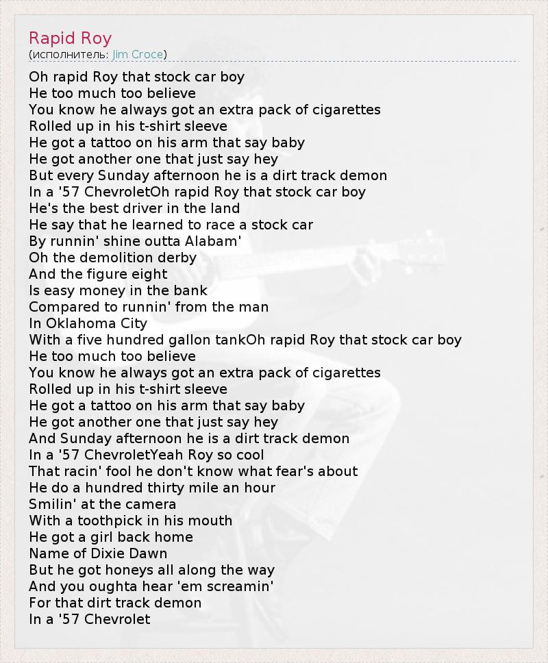 А как ты думаешь, о чем песня "Rapid Roy" ?