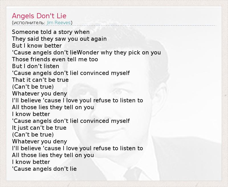 А как ты думаешь, о чем песня "Angels Don't Lie" ?