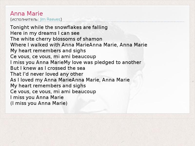 As I loved my Anna MarieAnna Marie, Anna Marie