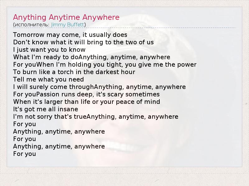 А как ты думаешь, о чем песня "Anything Anytime Anywhere" ?