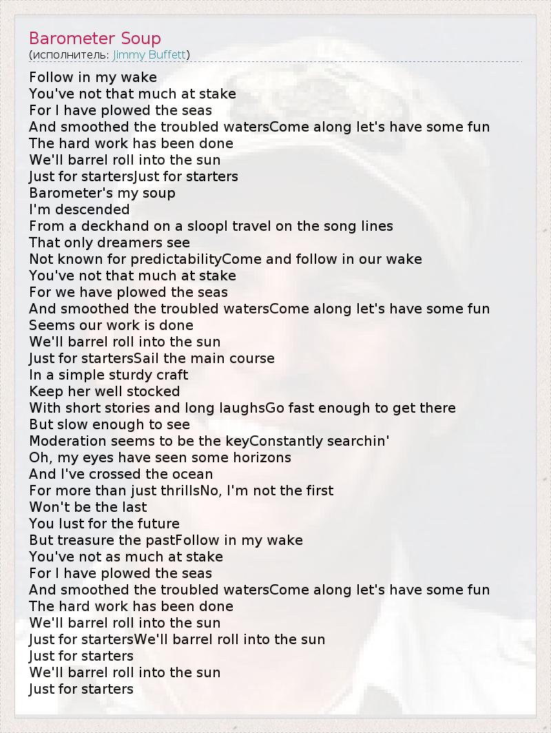 А как ты думаешь, о чем песня "Barometer Soup" ?