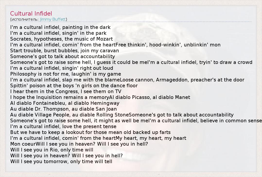 А как ты думаешь, о чем песня "Cultural Infidel" ?
