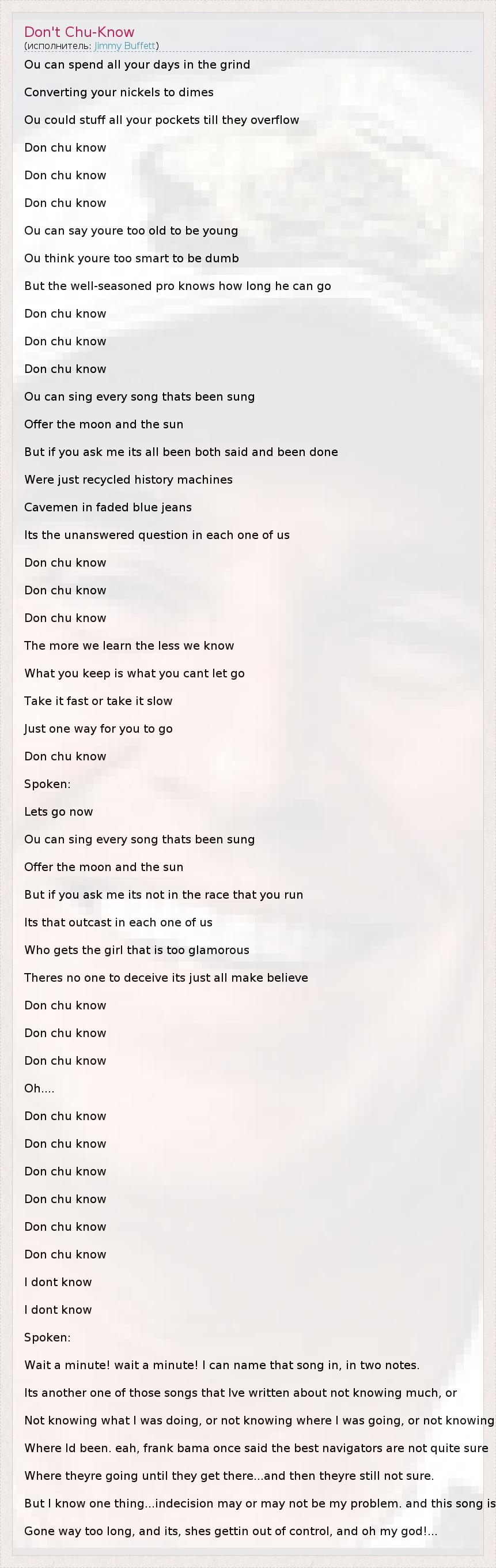 А как ты думаешь, о чем песня "Don't Chu-Know" ?
