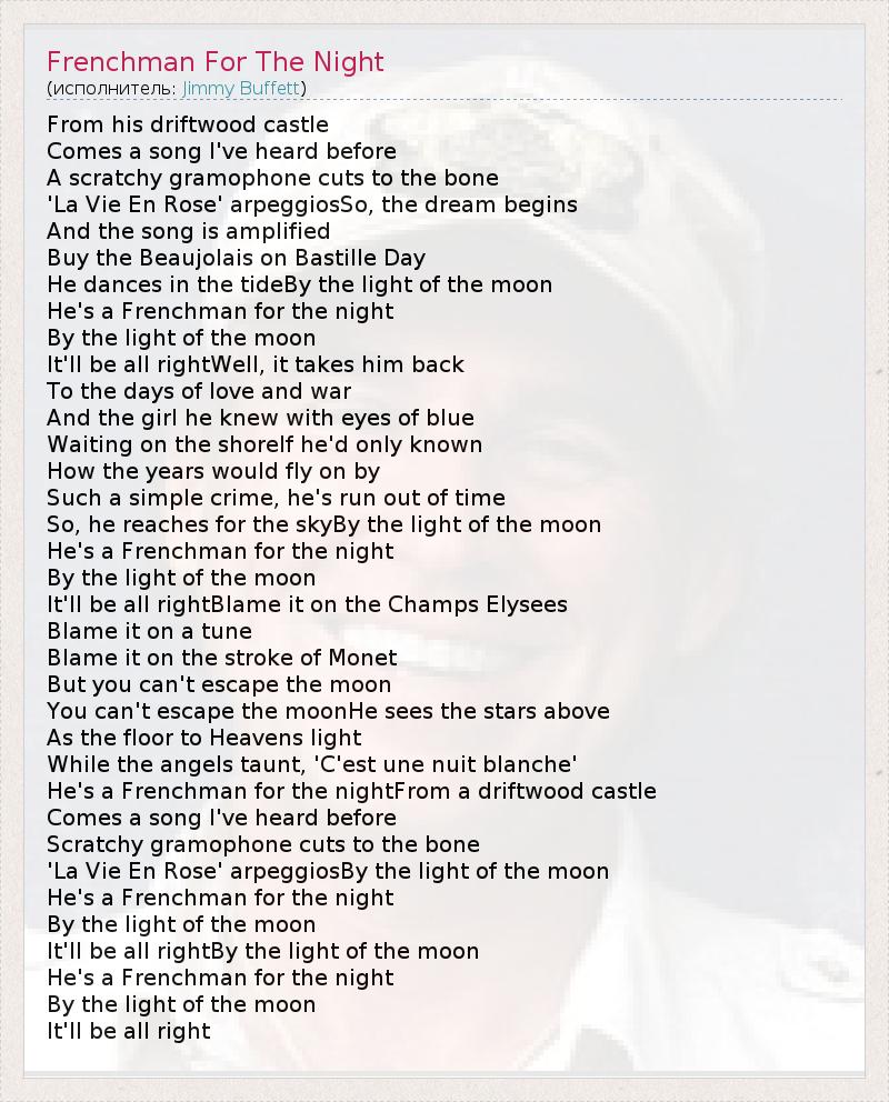 А как ты думаешь, о чем песня "Frenchman For The Night" ?