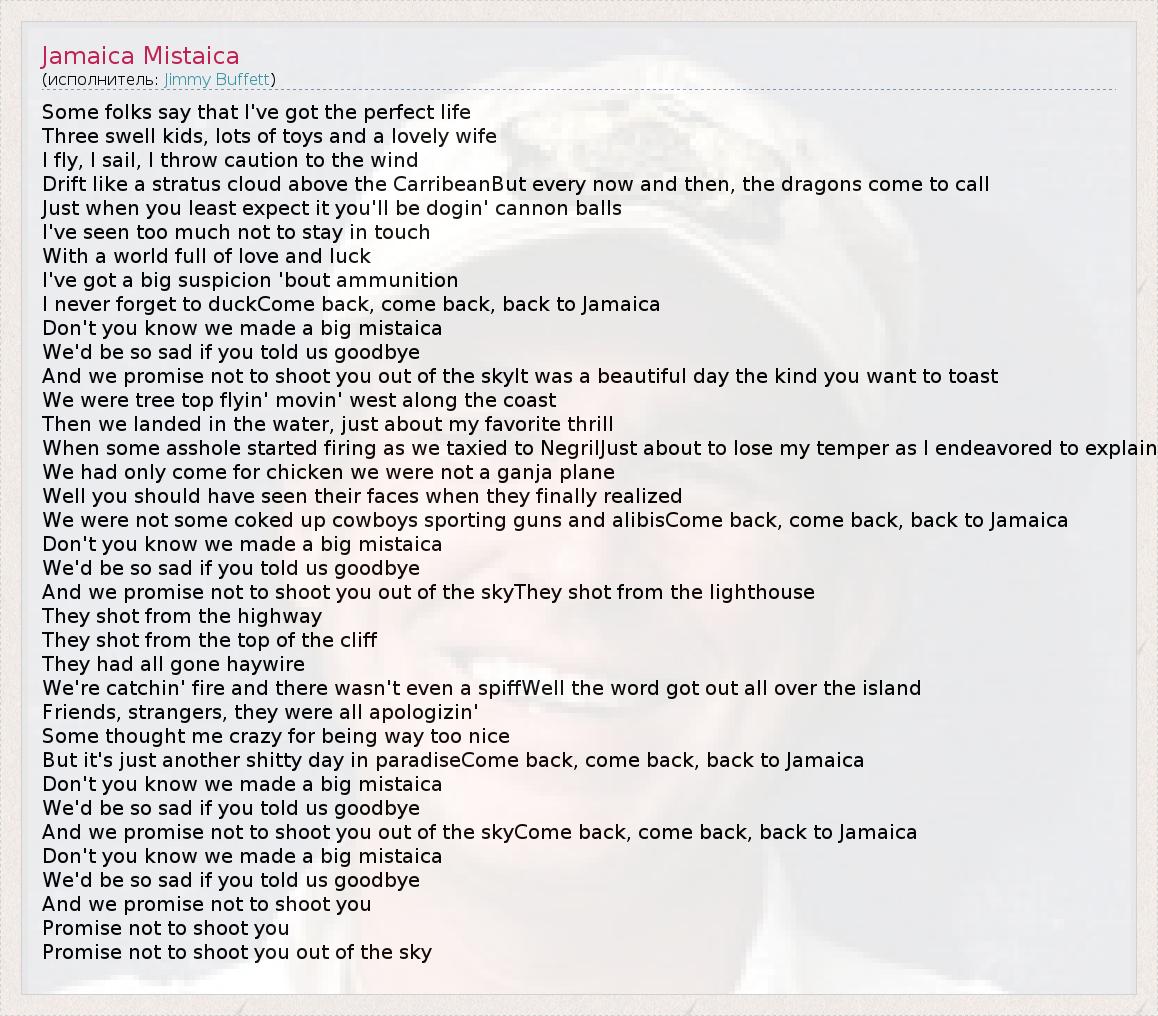 А как ты думаешь, о чем песня "Jamaica Mistaica" ?