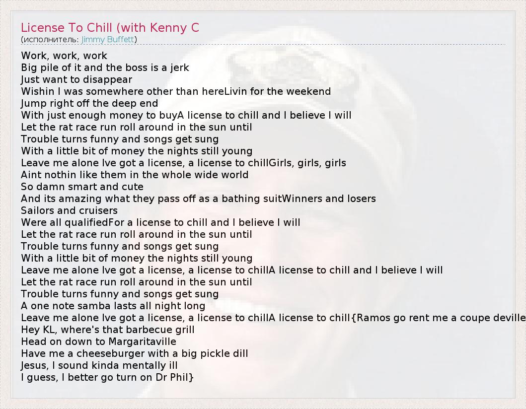 А как ты думаешь, о чем песня "License To Chill (with Kenny C" ?