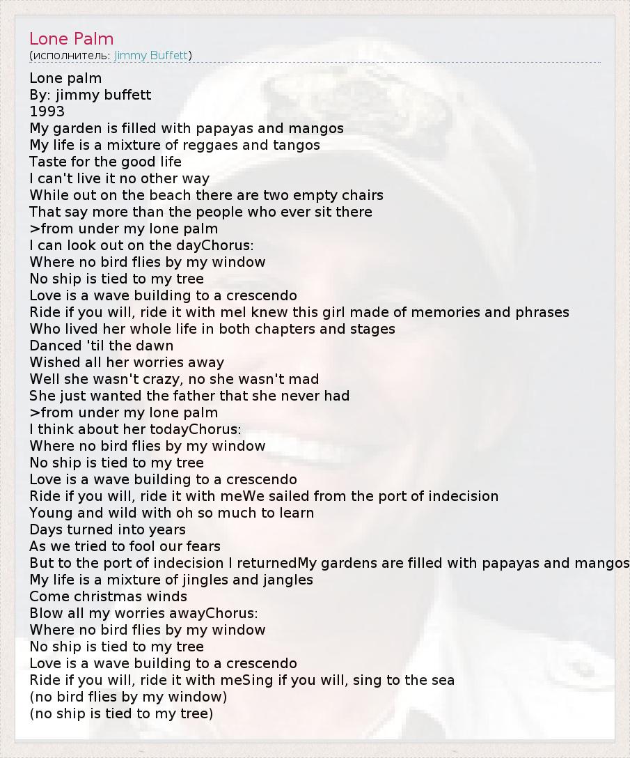 А как ты думаешь, о чем песня "Lone Palm" ?