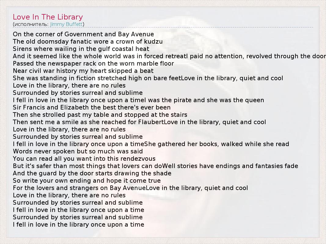 А как ты думаешь, о чем песня "Love In The Library" ?