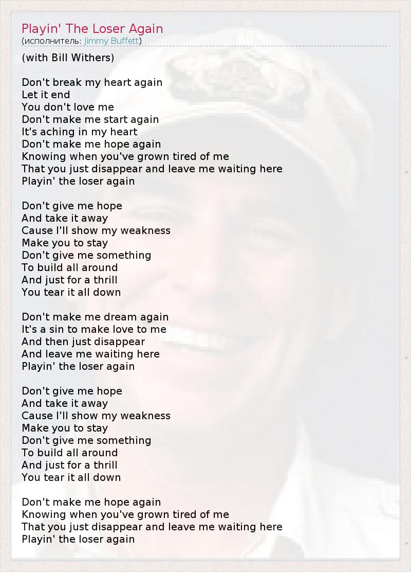 А как ты думаешь, о чем песня "Playin' The Loser Again" ?