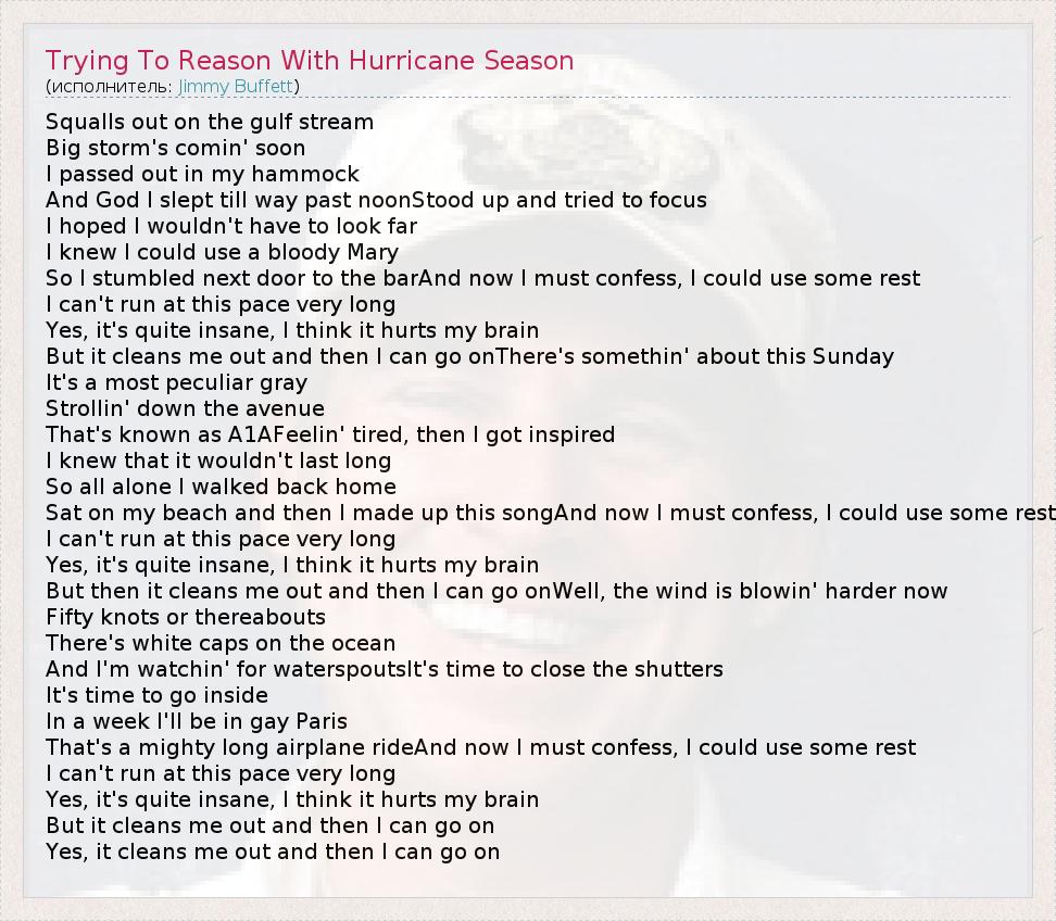 ГлавнаяИсполнителиJimmy BuffettTrying To Reason With Hurricane Season