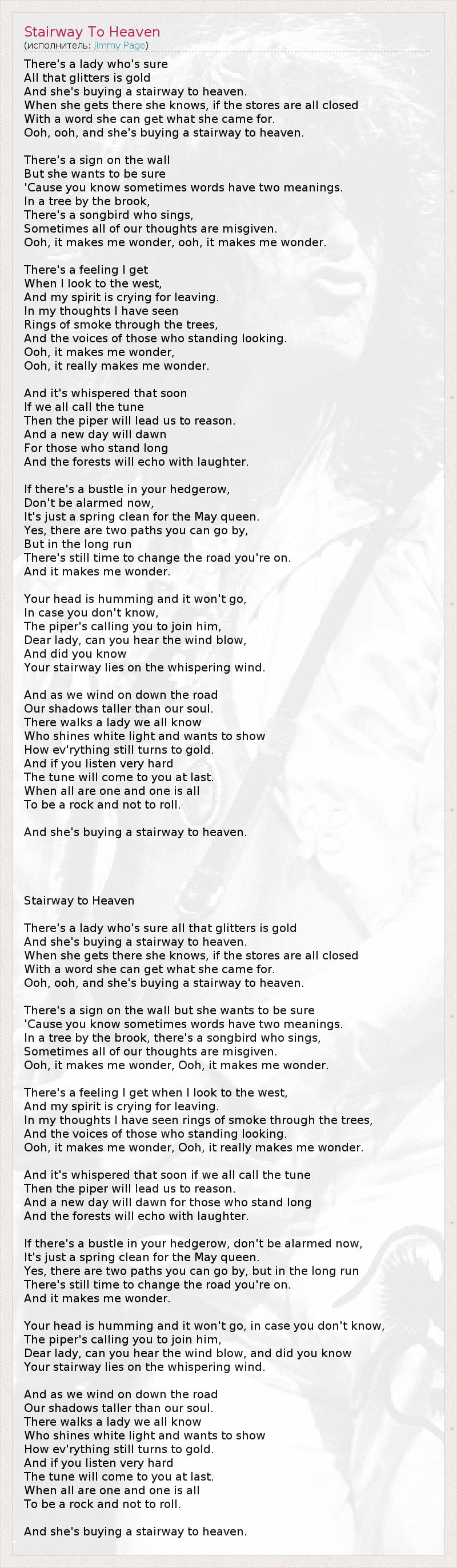 А как ты думаешь, о чем песня "Stairway To Heaven" ?