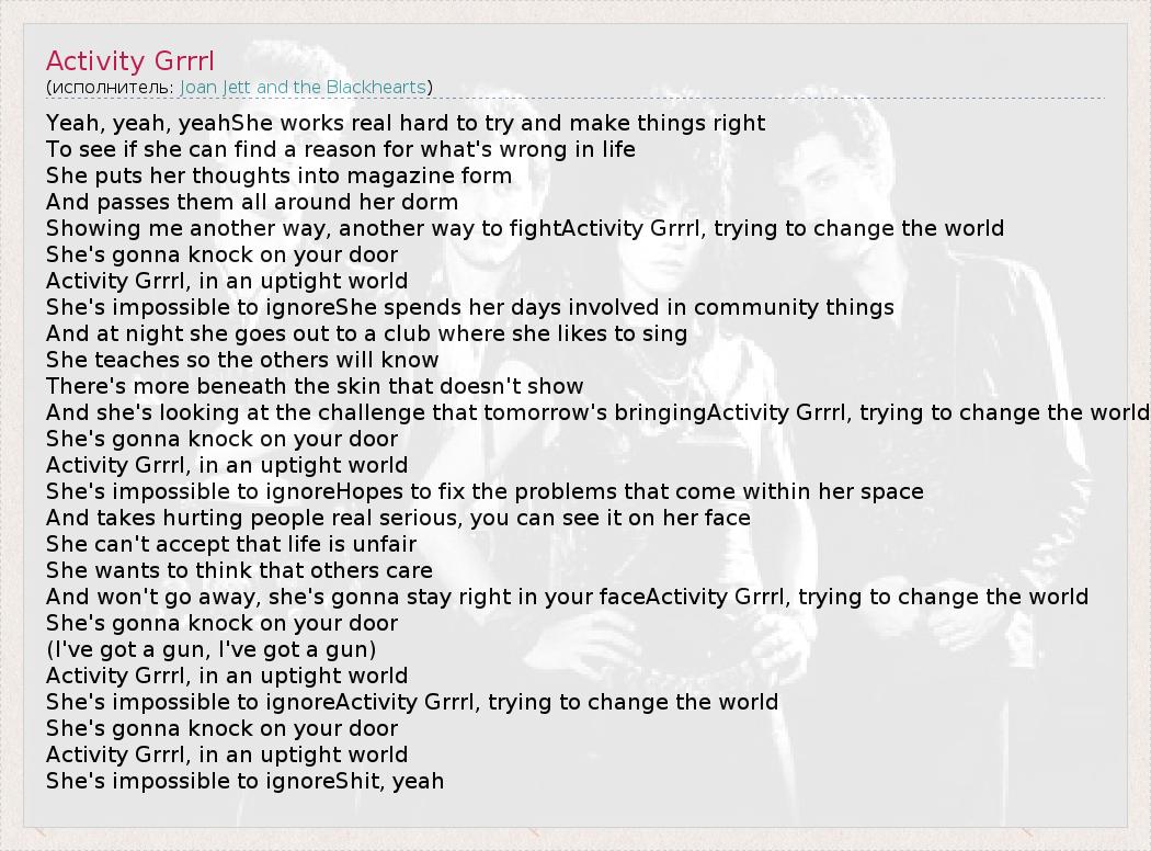 А как ты думаешь, о чем песня "Activity Grrrl" ?