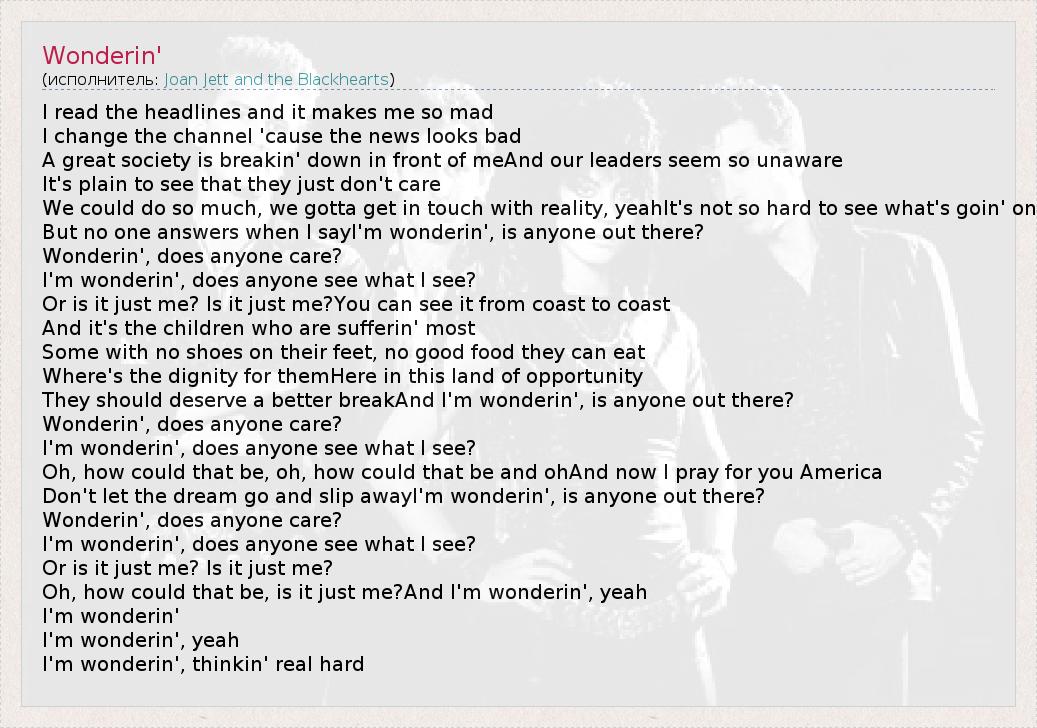 А как ты думаешь, о чем песня "Wonderin'" ?