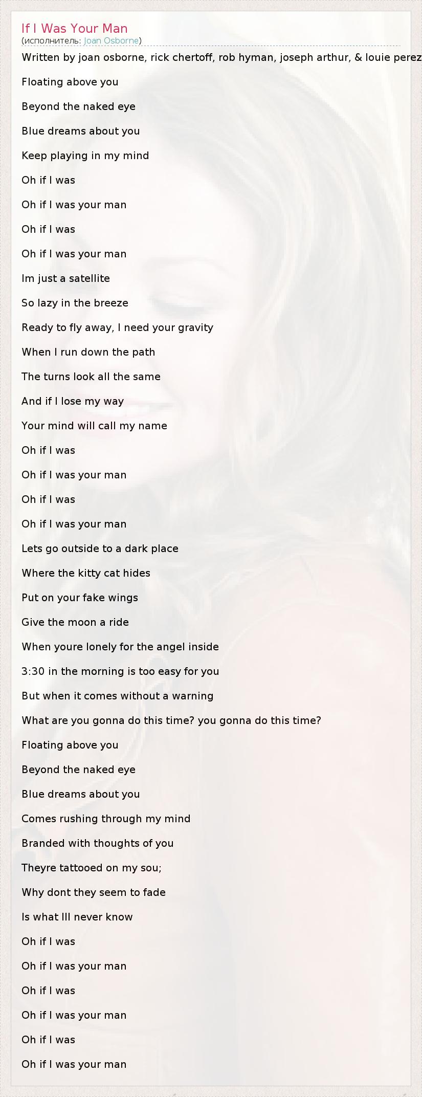 А как ты думаешь, о чем песня "If I Was Your Man" ?