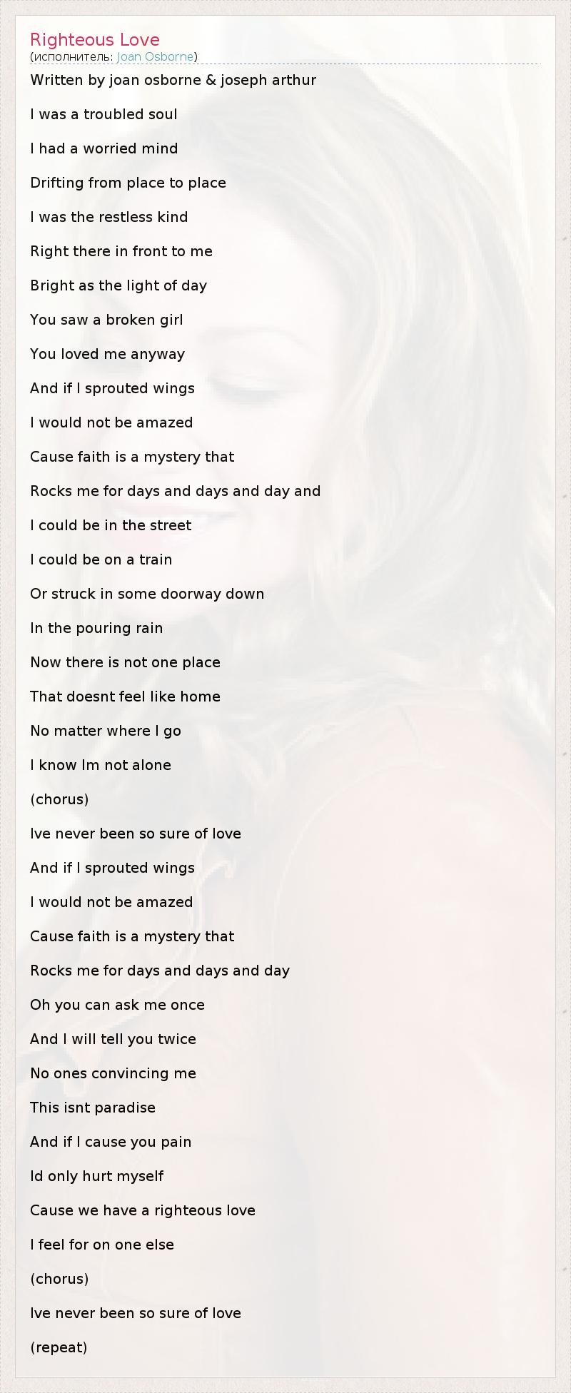А как ты думаешь, о чем песня "Righteous Love" ?