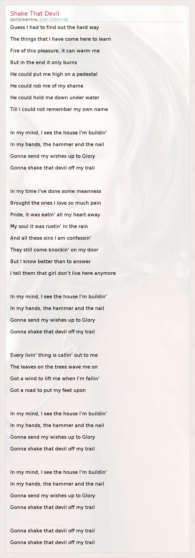 А как ты думаешь, о чем песня "Shake That Devil" ?