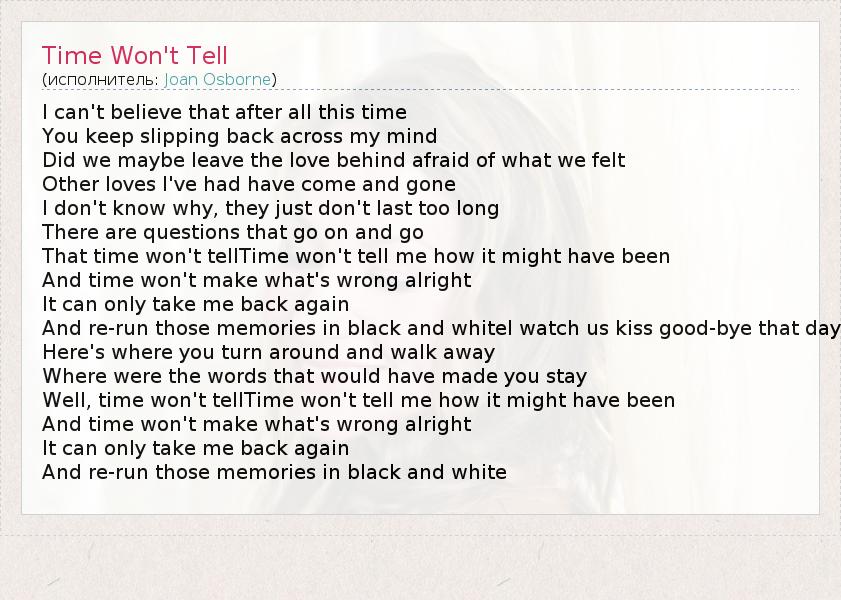 А как ты думаешь, о чем песня "Time Won't Tell" ?